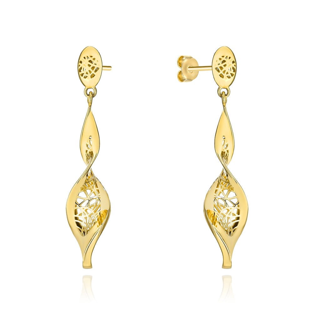 Kolczyki złote zakręcane z ażurowym zdobieniem