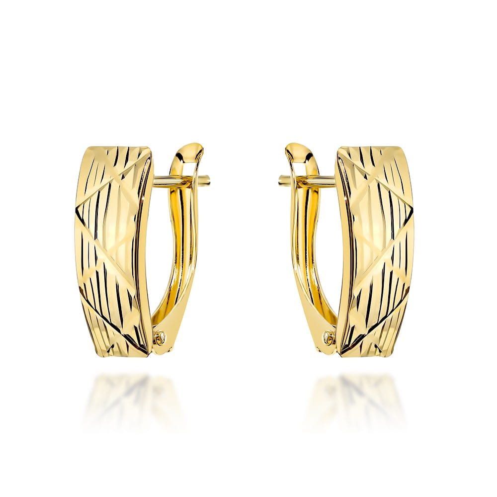 Kolczyki złote zdobione diamentowanymi paskami