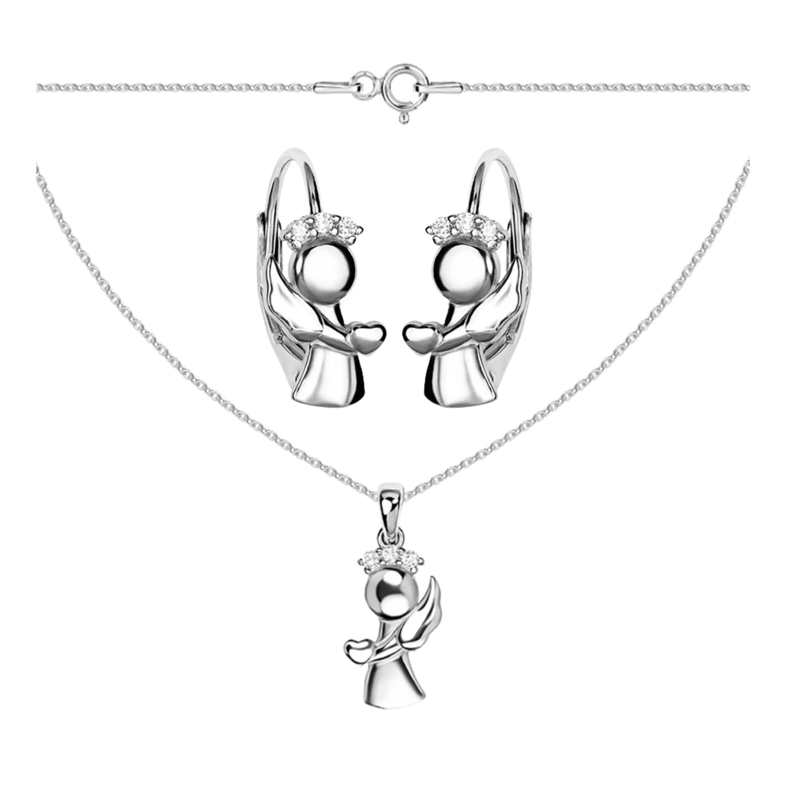 Komplet biżuterii srebrnej Anioł kolczyki i zawieszka rodowany 925