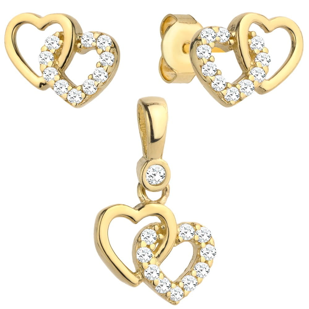 Kamień Z kamieniem Wzór Serduszka Materiał Złoto Kolor złota Żółty Próba 585 Kolczyki: Długość serduszek [mm] 6 Kolczyki: Szerokość serduszek [mm] 8     Zawieszka: Długość serduszek [mm] 8 Zawieszka: Szerokość serduszek [mm] 10 Zawieszka: Długość serduszek z zawieszką [mm] 14 Precyzyjnie wykonany komplet złote kolczyki + zawieszka próby 585. Doskonały jako prezent na imieniny, ważny jubileusz, ozdoba eleganckiej kreacji. Zajmujemy się sprzedażą biżuterii ze złota. Sprzedajemy towary pochodzące od krajowych i zagranicznych producentów. Wszystkie produkty pochodzą z legalnego źródła. Wystawiamy faktury VAT.
