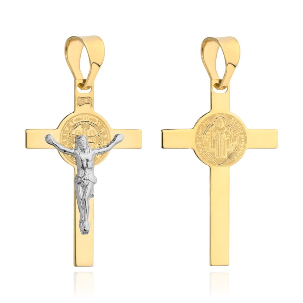Krzyżyk złoty benedyktyński w dwóch kolorach złota