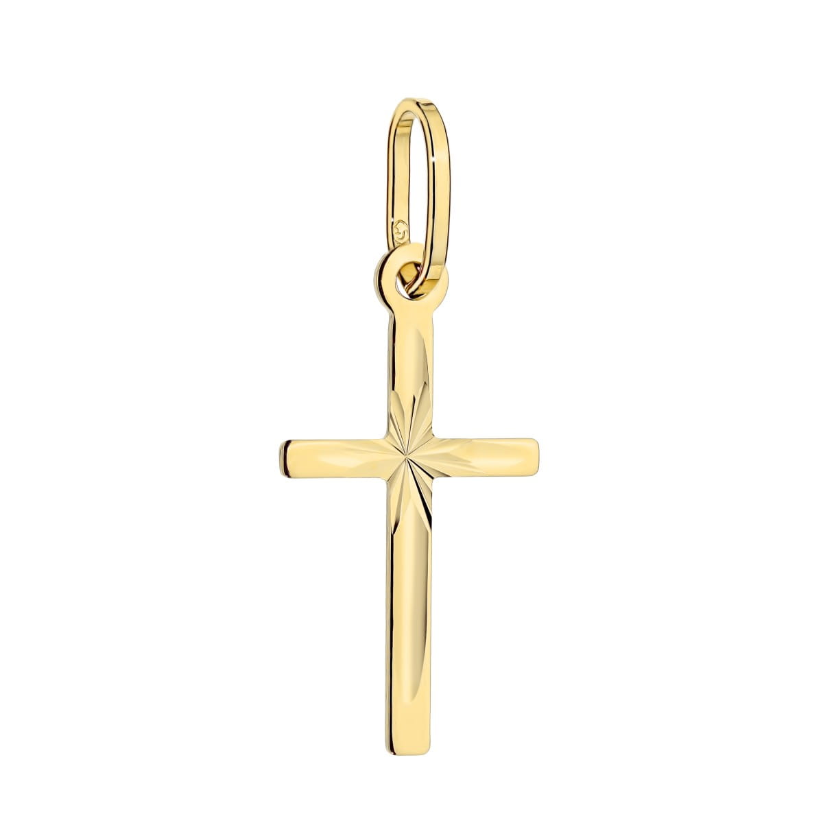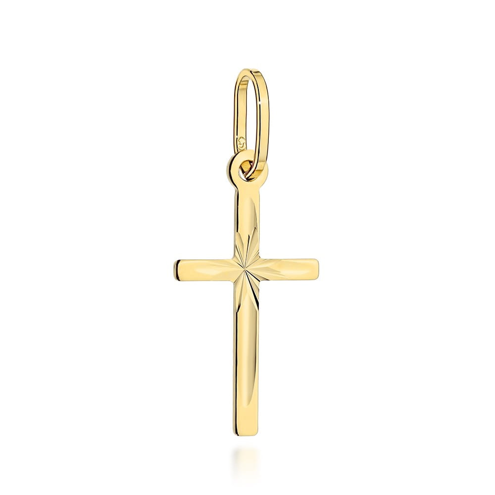 Krzyżyk złoty żłobiony z diamentowaniem duży