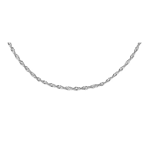 Łańcuszek srebrny singapur wykonany ze srebra rodowanego próby 925. To bardzo subtelny i niezwykle finezyjny splot. Świetnie wygląda zarówno bez, jak i z zawieszką. Łańcuszek został zabezpieczony procesem rodowania co sprawia, że pięknie się błyszczy i cechuje dużą odpornością na uszkodzenia oraz niekorzystne oddziaływanie środowiska. Biżuteria ta jest doskonałą propozycją na prezent dla kobiet i dzieci z wielu różnych okazji np. jako Pamiątka Pierwszej Komunii Świętej, Rocznicy Ślubu, urodzin. Biżuteria nie zawiera niklu, przez co nie uczula i nie powoduje reakcji alergicznej.