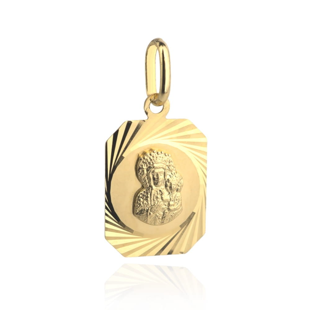Medalik Matka Boska z dzieciątkiem w kształcie prostokąta diamentowanego na bokach