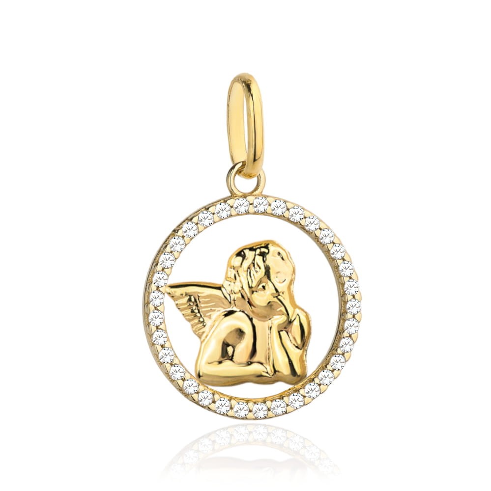 Medalik aniołek w kole wysadzanym cyrkoniami pr. 585