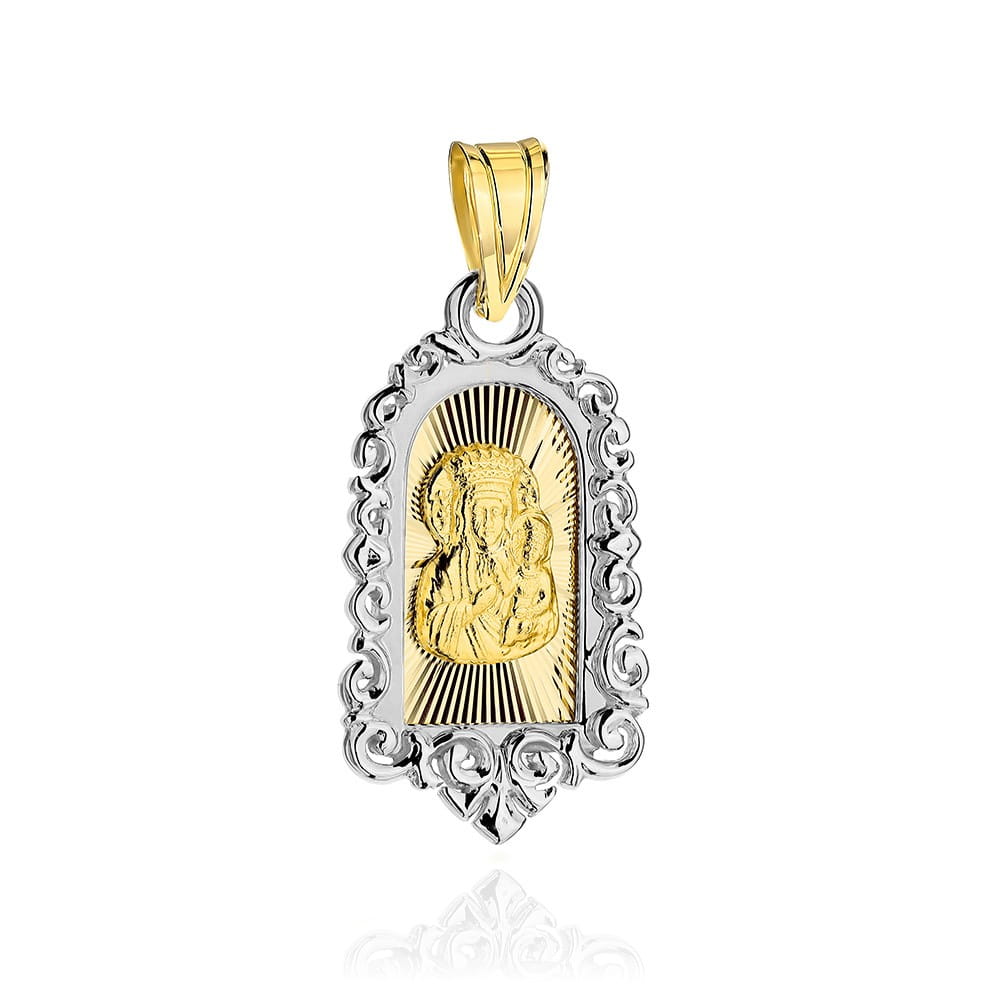 Medalik w dwóch kolorach złota Matka Boska Częstochowska w diamentowanym obrazie 585