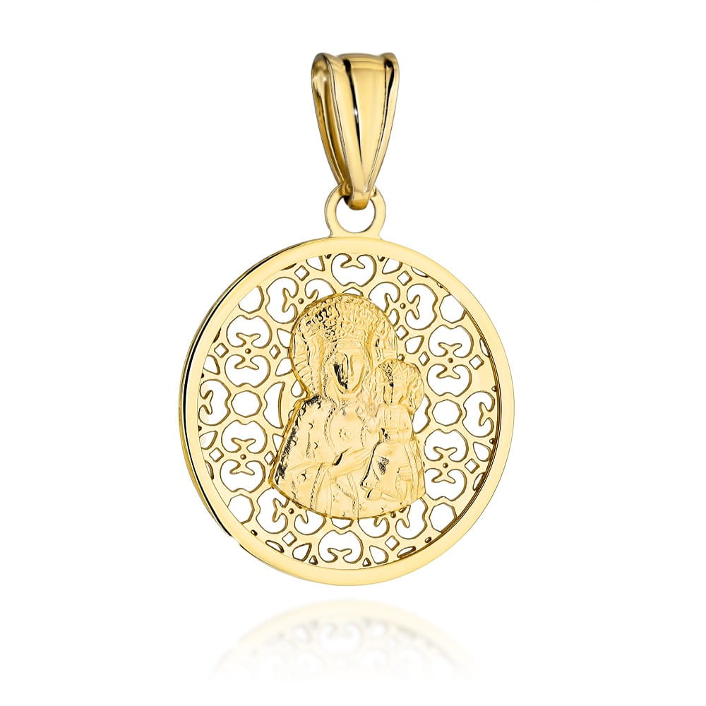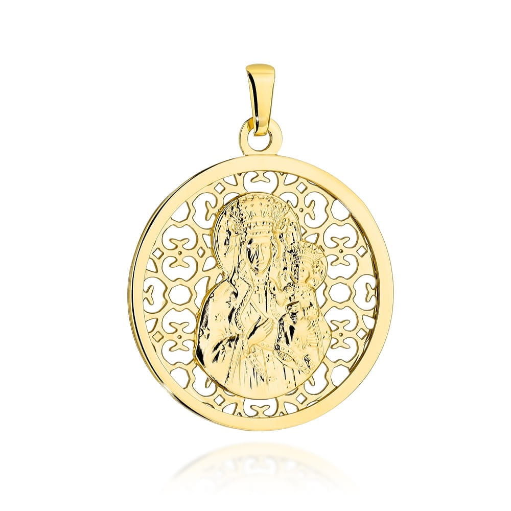 Medalik złoty Matka Boska Częstochowska w ażurowym kole