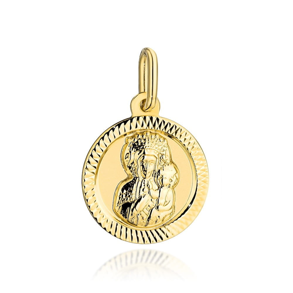 Medalik złoty Matka Boska Częstochowska w kółku w diamentowanej oprawie