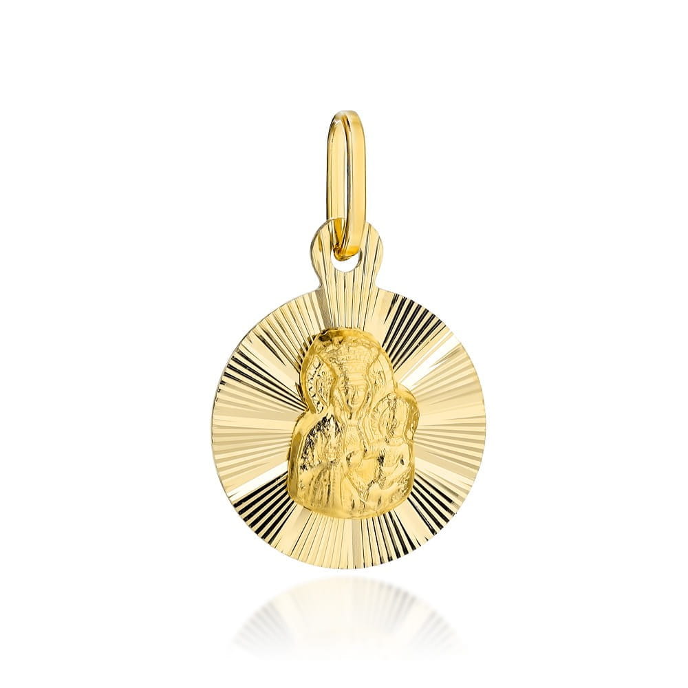 Medalik złoty Matka Boska Częstochowska w kółku z promieniami