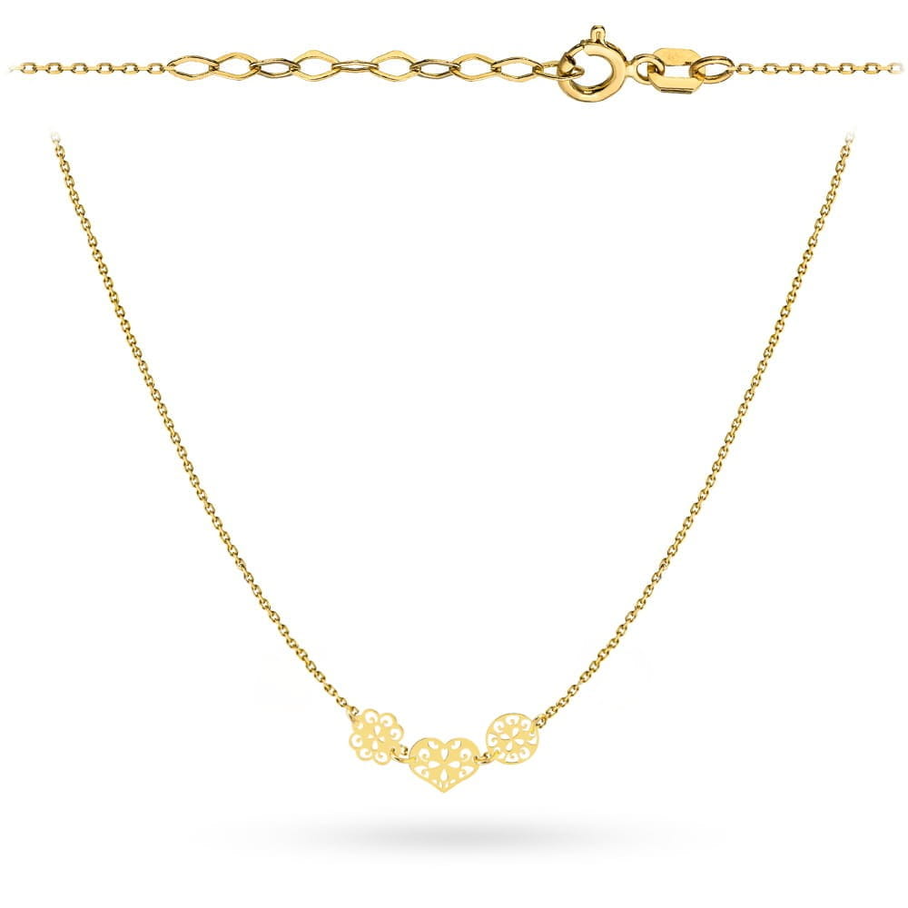 Naszyjnik złoty ażurowe serce, kwiatek i kółko