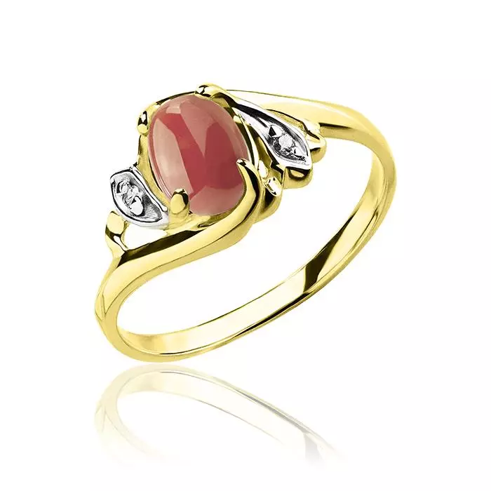 Pierścionek z koralem i cyrkoniami złoto próba 585