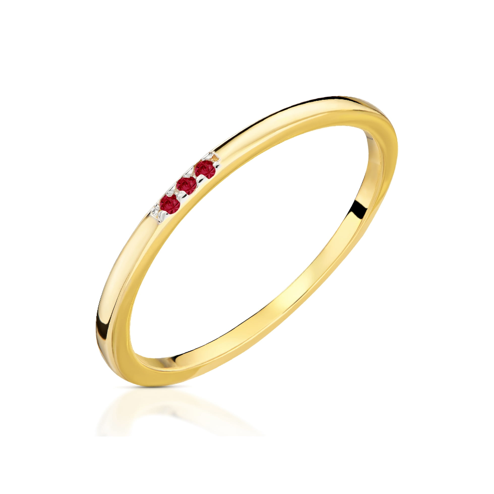 Pierścionek z trzema małymi rubinami w rzędzie
