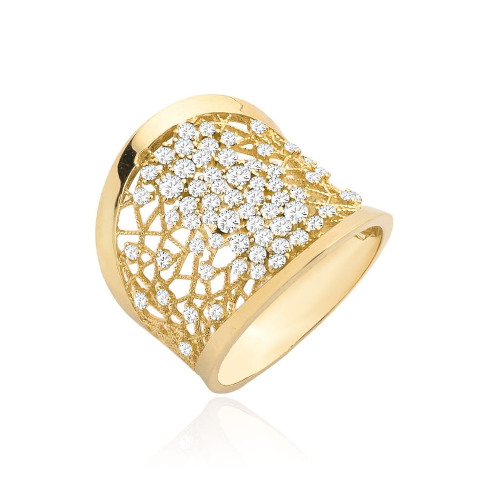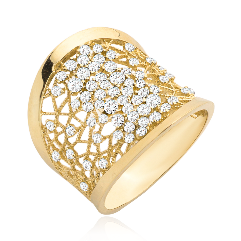 Pierścionek złoty ażurowy z białymi cyrkoniami