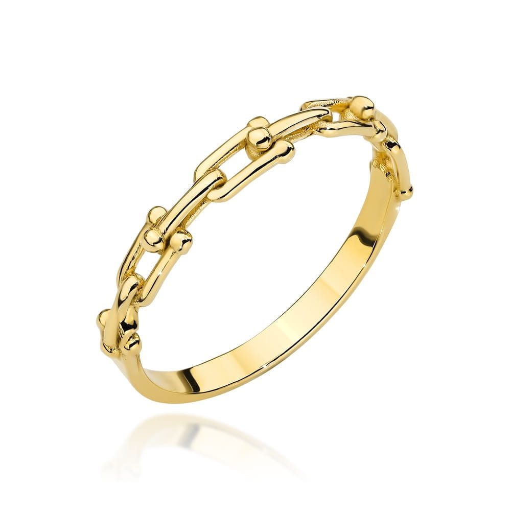 Kamień Bez kamienia Materiał Złoto Kolor Złota Żółte Próba 585 Szerokość pierścionka [mm] ok. 2,9 Średnica gładkiej kulki [mm] 1,4 mm Precyzyjnie wykonany złoty pierścionek próby 585. Zajmujemy się sprzedażą biżuterii ze złota.Sprzedajemy towary pochodzące od krajowych i zagranicznych producentów.Wszystkie produkty pochodzą z legalnego źródła.Wystawiamy faktury VAT.