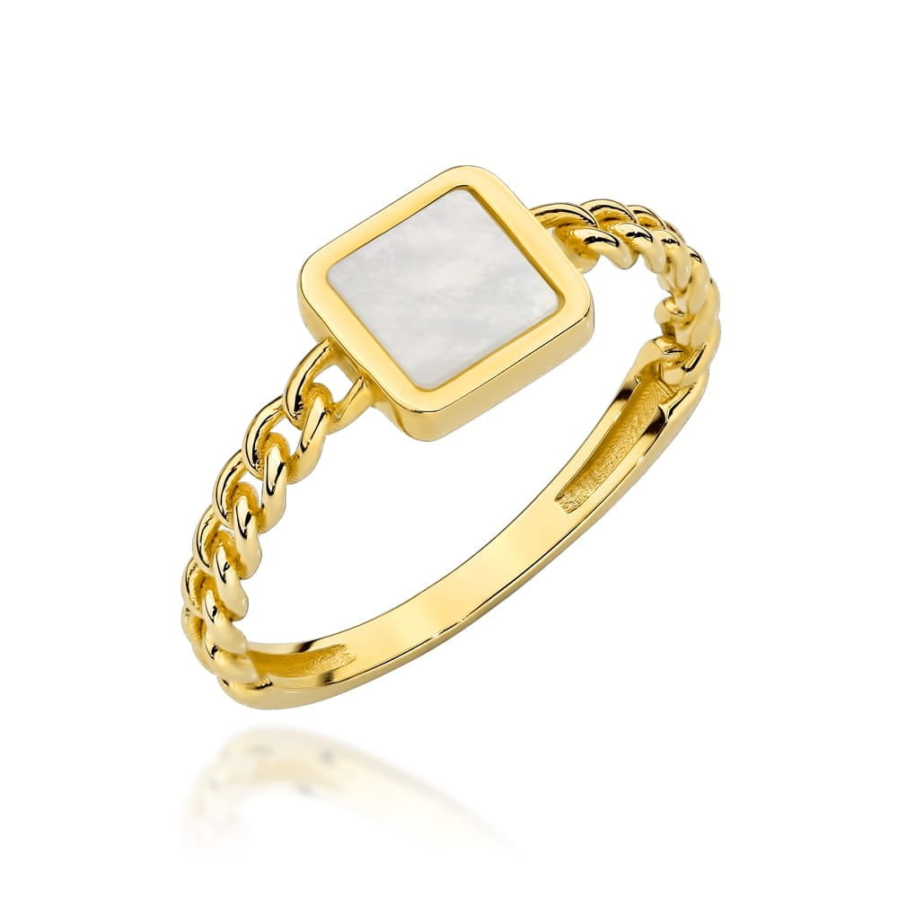 Pierścionek złoty kwadrat z masą perłową