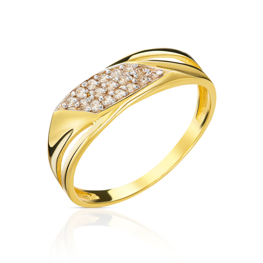 Pierścionek złoty z cyrkoniami w kształcie rombu próba 585
