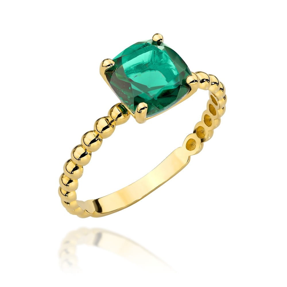 Pierścionek złoty z kolekcji "COLORFUL STONE" - przezroczysty zielony kwarc kwadrat