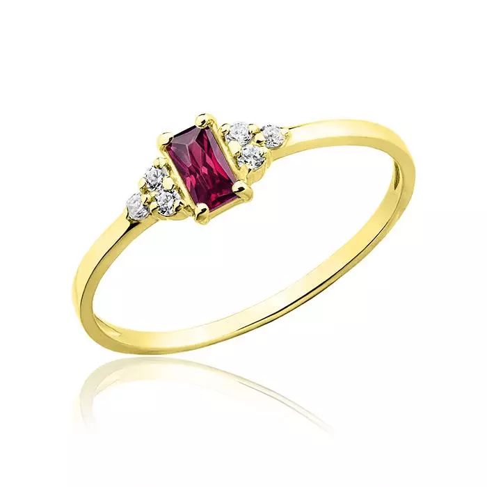 Pierścionek złoty z rubinem i cyrkoniami próba 585