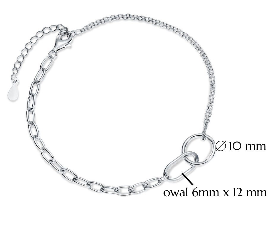 Nowoczesna bransoletka typu CHAINS wykonana z najlepszej jakości rodowanego srebra próby 925. Bransoletka posiada regulację zapięcia. Wyjątkowy design emanuje szykiem i elegancją, idealnie komponując się z Twoim indywidualnym stylem. Ponadczasowa biżuteria, która podkreśli Twoje piękno, doda blasku i dopełni każdą stylizację. Jest to idealny pomysł na prezent dla kobiet z wielu okazji np. urodzin, świąt, rocznicy lub z okazji Dnia Mamy. Biżuteria srebrna z powłoką rodowania zapobiega ciemnieniu i matowieniu. Chroni biżuterię przed uszkodzeniami i zarysowaniami. Biżuteria rodowana zachowuje swój piękny blask i kolor. Nie zawiera niklu, nie uczula i nie powoduje alergii.