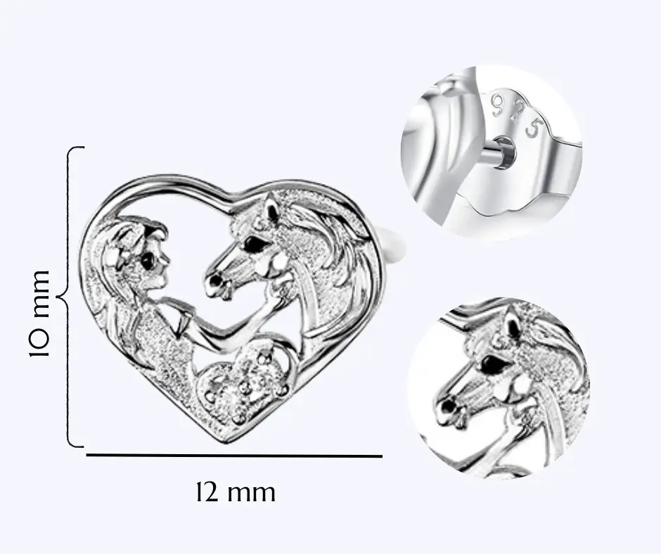 Kolczyki srebrne serca dziewczynka z koniem, to idealny wybór dla miłośniczek jeździectwa i koni. Wykonane z wysokiej jakości srebra, pokryte warstwą rodu, są odporne na matowienie i zachowują swój blask na dłużej. Motyw serca i konia symbolizuje przyjaźń, wolność i pasję do natury, co czyni te kolczyki wyjątkowym dodatkiem zarówno dla dziewczynek, jak i młodych kobiet kochających konie. Zapięcie typu wkrętki zapewnia wygodę i bezpieczeństwo noszenia, idealne na co dzień i wyjątkowe okazje. Sprawdź teraz i wybierz elegancję w każdej stylizacji!