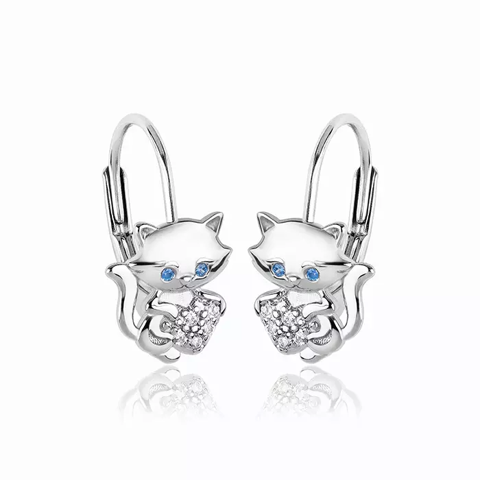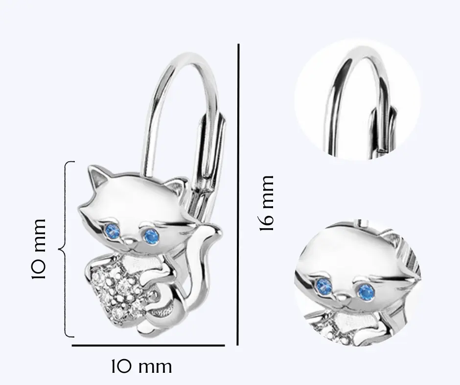 Srebrne Kolczyki dla dziewczynki kotki rodowane angielskie