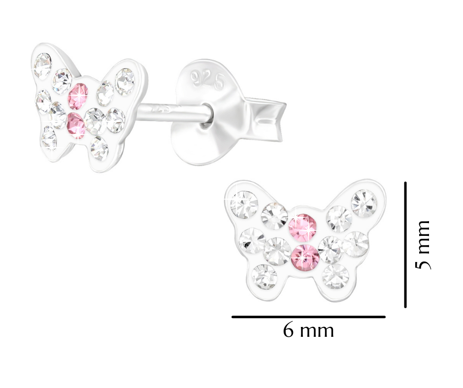 Srebrne kolczyki dla dziewczynki motylki z kryształami 925