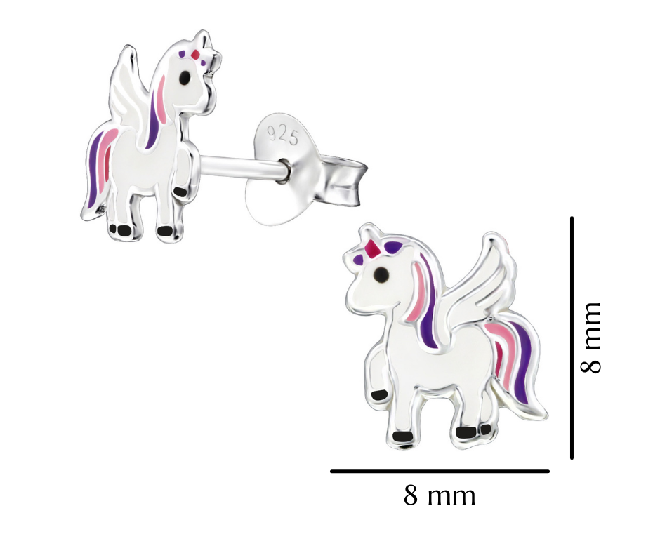 Srebrne kolczyki dziecięce jednorożce sztyft 925