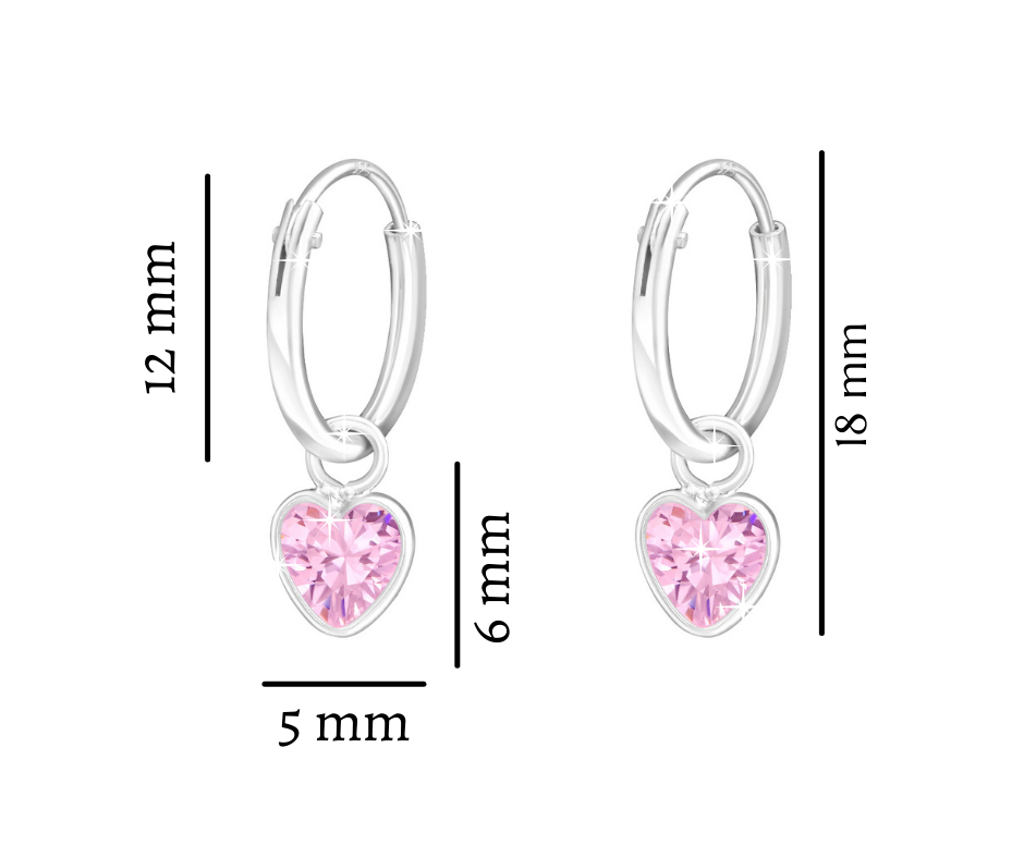Urocze srebrne kolczyki kółka dla dzieci, wykonane ze srebra próby 925 z wiszącymi zawieszkami w kształcie serca, które zostały wysadzane lśniącymi cyrkoniami w kolorze różowym. Delikatny i subtelny blask, który pasuje do każdej dziecięcej stylizacji. Biżuteria srebrna jest doskonałą propozycją na prezent dla dziewczynki z okazji urodzin, imienin lub świąt. Kolczyki nie zawierają niklu, przez co nie uczulają i nie powodują reakcji alergicznej.