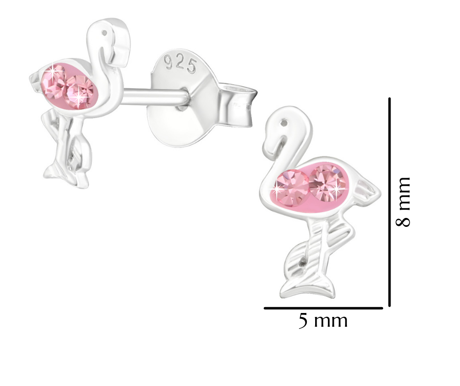 Srebrne kolczyki flamingi dla dziewczynki sztyft