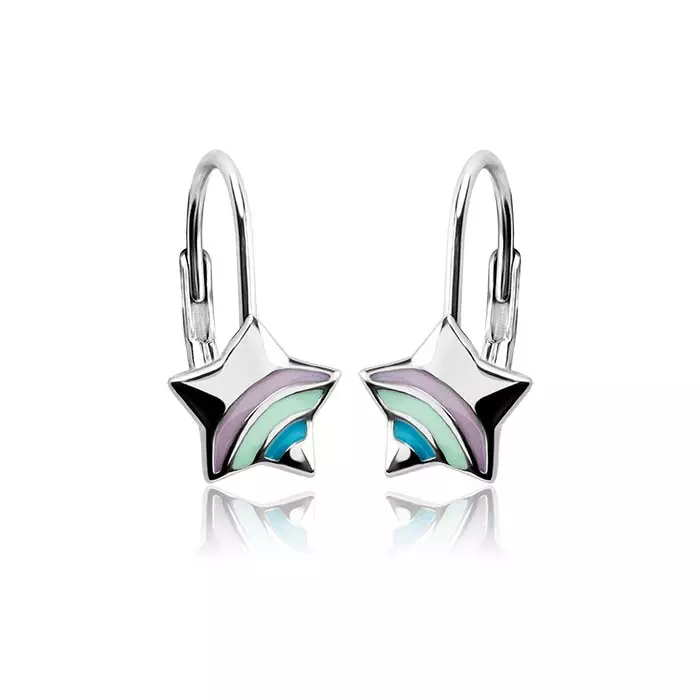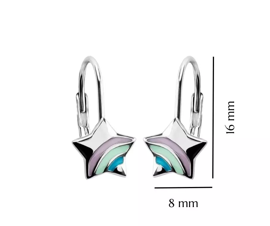 Srebrne kolczyki gwiazdki tęcza dla dziecka angielskie