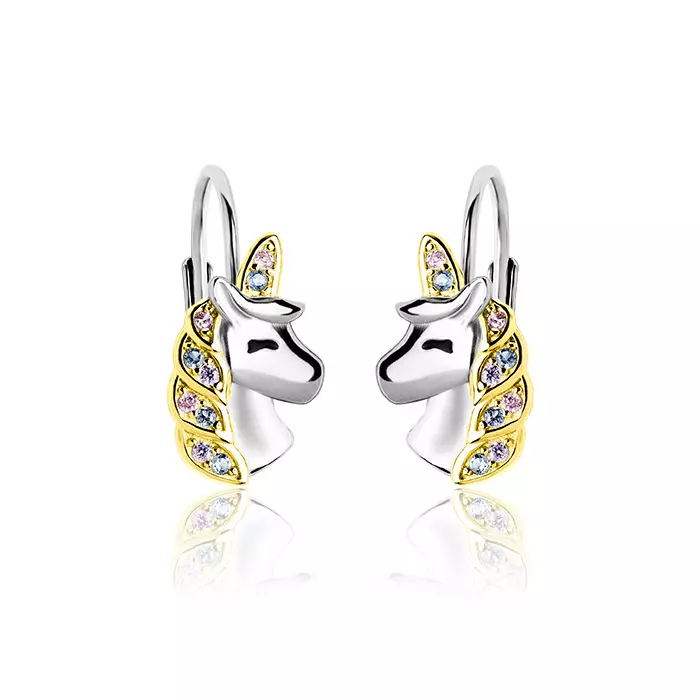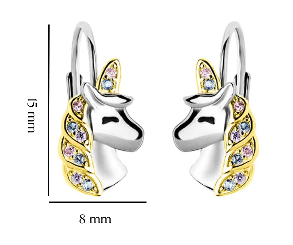 Srebrne kolczyki jednorożce dla dziewczynki pozłacane 925 angielskie zapięcie