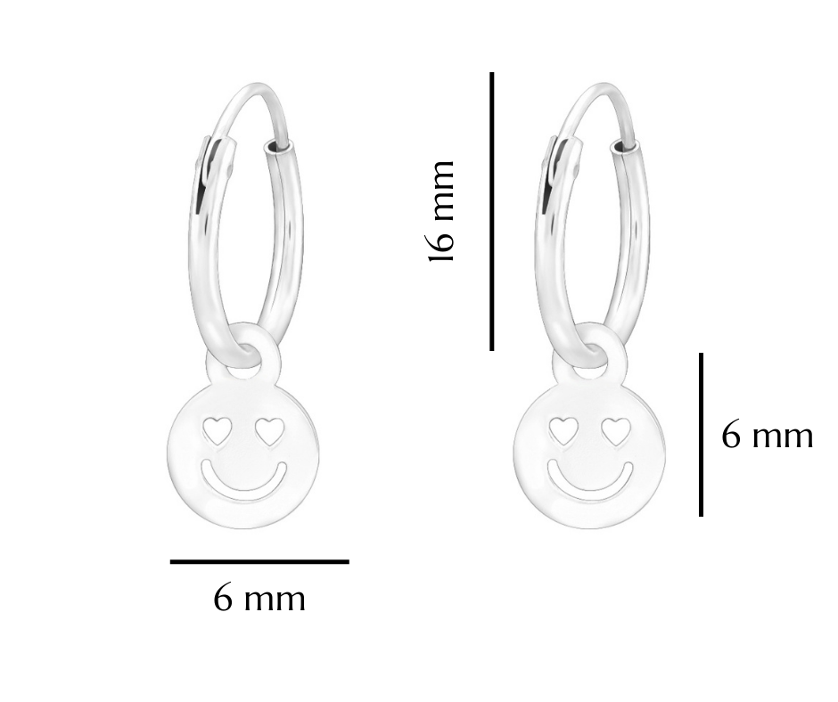 Srebrne kolczyki kółka dla dziewczynki z zawieszką emotki
