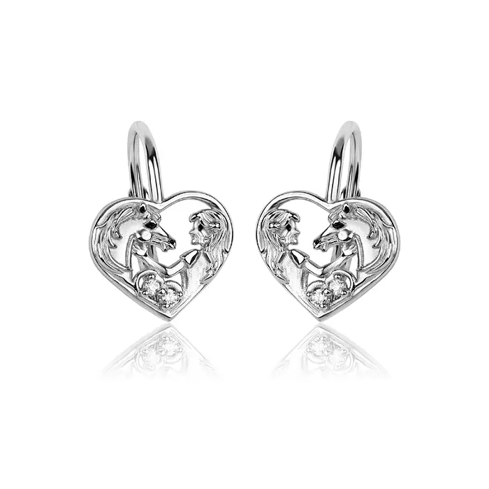 Srebrne kolczyki konik dziewczynka w sercu konie 925 angielskie zapięcie