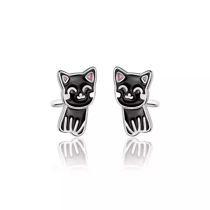 Srebrne kolczyki czarne kotki dla dziewczynki, wykonane zostały ze srebra rodowanego próby 925. Kolczyki zostały w całości pokryte czarną emalią, posiadają zapięcie typu sztyft, które jest idealnie dopasowane do dziecięcego uszka. Kolczyki w kształcie kotów to urocza i kreatywna biżuteria, która cieszy się dużą popularnością wśród dzieci, lubiących te puchate zwierzątka. Dzięki tym kolczykom dziecko z pewnością wyrazi miłość do ukochanego czworonoga. Biżuteria ta jest doskonałą propozycją na prezent dla dziewczynki z okazji urodzin, imienin lub świąt. Kolczyki nie zawierają niklu, przez co nie uczulają i nie powodują reakcji alergicznej.