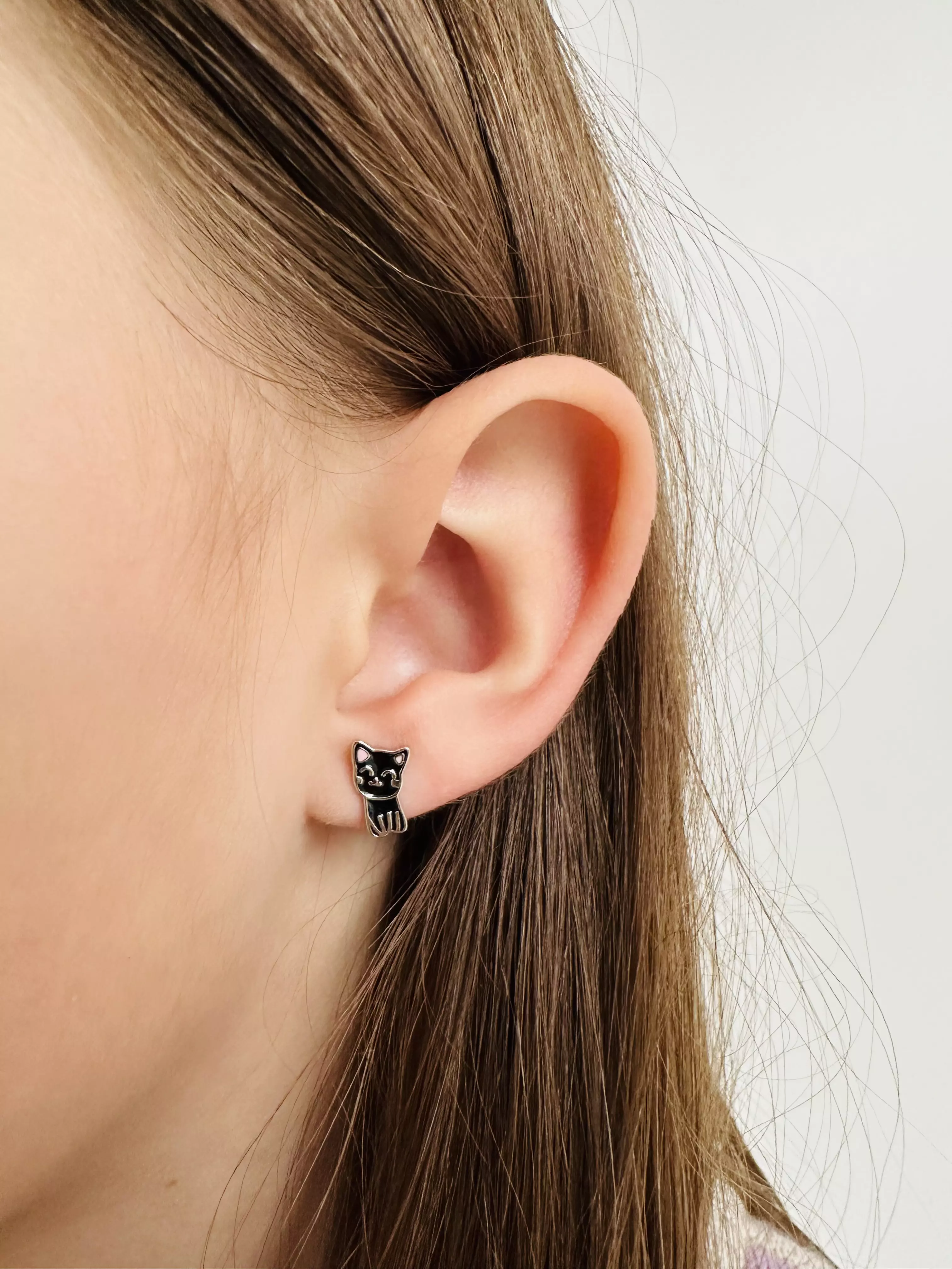 Srebrne kolczyki kotki dla dziewczynki wkrętki 925