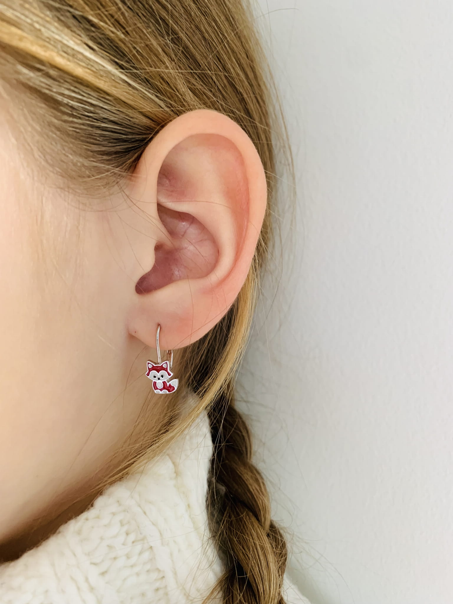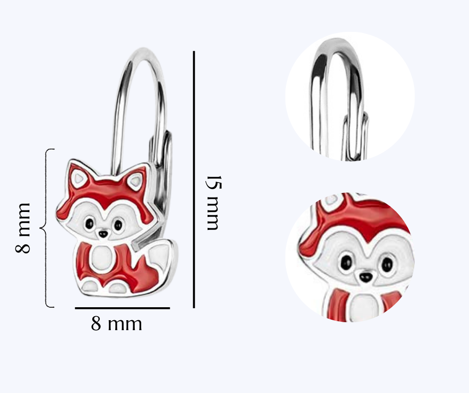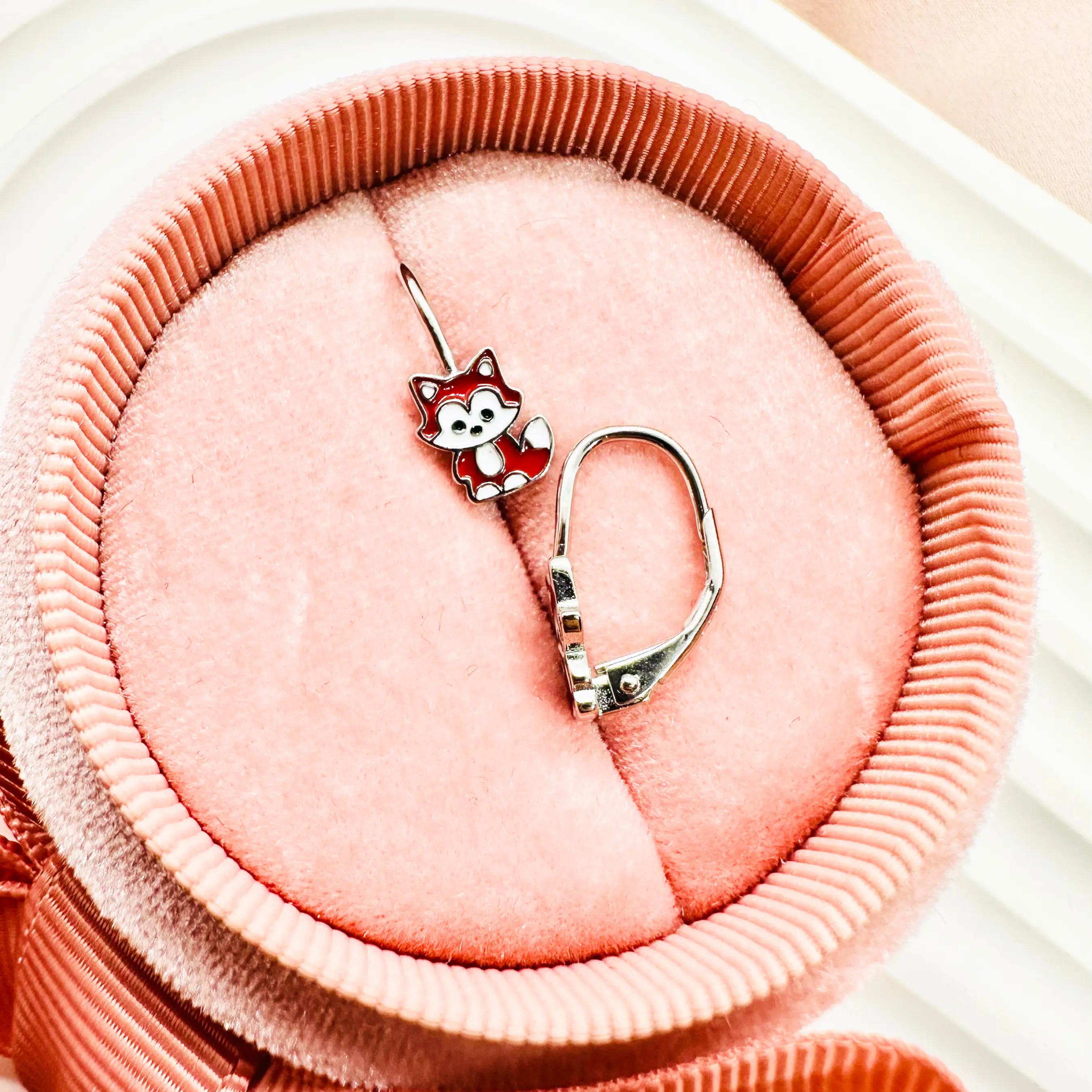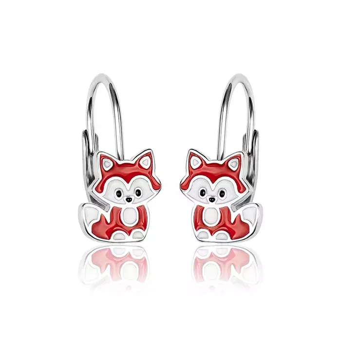 Srebrne kolczyki liski dla dziewczynki angielskie zapięcie