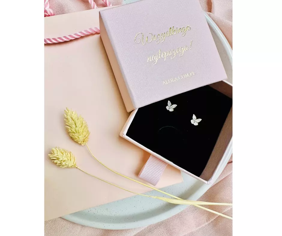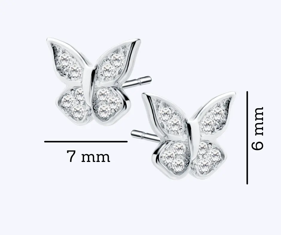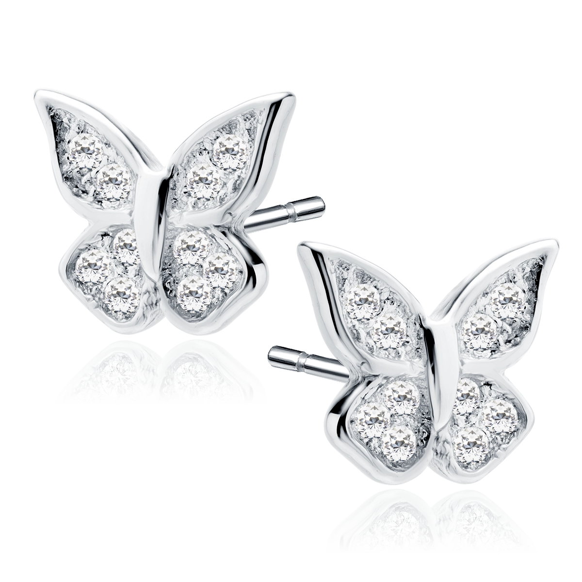 Srebrne kolczyki motylki z cyrkoniami rodowane 925 wkrętki