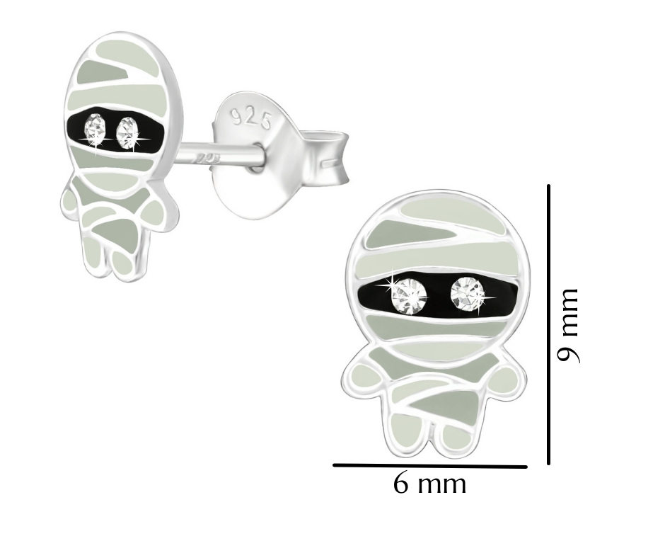 Srebrne kolczyki mumie na Halloween dla dzieci 925