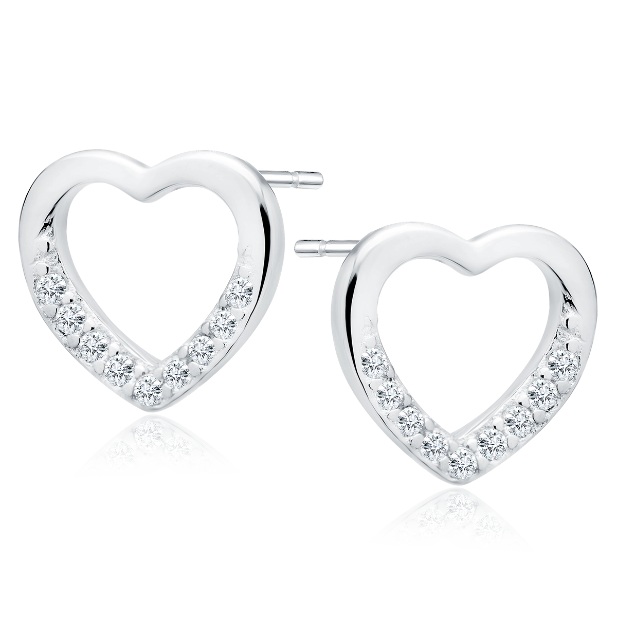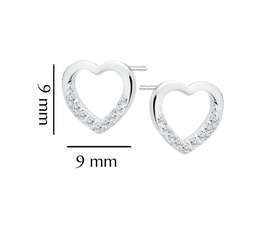 Delikatne kolczyki serca wykonane z najwyższej jakości srebra rodowanego próby 925, oprawione lśniącymi białymi cyrkoniami. Kolczyki serca to subtelny design i piękna symbolika, którą można podarować bliskiej kobiecie i dzieciom na specjalne okazje. Taka biżuteria doskonale sprawdzi się także w roli pamiątki z okazji Pierwszej Komunii Świętej, a także z okazji Walentynek lub Rocznicy Ślubu. Dodatkowo kolczyki posiadają, cechę urzędu probierczego co potwierdza, wysoką jakość naszych wyrobów. Kolczyki zostały zabezpieczone procesem rodowania co sprawia, że kolczyki pięknie się błyszczą i cechują się dużą odpornością na uszkodzenia i niekorzystne oddziaływanie środowiska. Biżuteria nie zawiera niklu, przez co nie uczula i nie powoduje reakcji alergicznej.