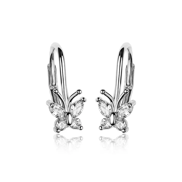 Srebrne kolczyki wiszące dla dziewczynki motylki cyrkonia angielskie