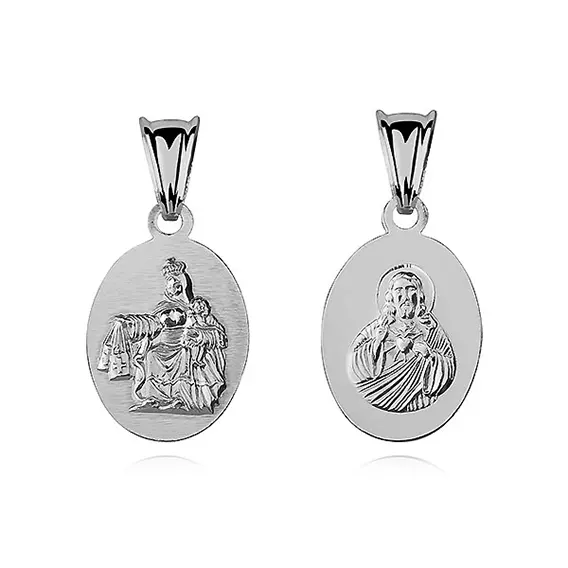 Medalik srebrny z Matką Boską i Jezusem, wykonany został ze srebra próby 925. Medalik ten to wspaniały symbol wiary i wyznawanych wartości. Dla osób wierzących życie i postępowanie Jezusa stanowi życiowy drogowskaz oraz wsparcie w trudnych chwilach. Warto mieć przy sobie symbol, który będzie przypominał każdego dnia o tym, że jest Ktoś, kto nad nami czuwa. Ten medalik jest często noszony jako ozdoba na szyi w formie naszyjnika, ale może być również przechowywany jako amulet w specjalnym miejscu. Medalik ten doskonale nadaje się jako prezent oraz pamiątka na ważne wydarzenia sakralne, takie jak Chrzest Święty, Pierwsza Komunia Święta, Bierzmowanie ważnego jubileuszu czy rocznicy, tworząc piękny i duchowy element biżuterii. Biżuteria nie zawiera niklu, przez co nie uczula i nie powoduje reakcji alergicznej.