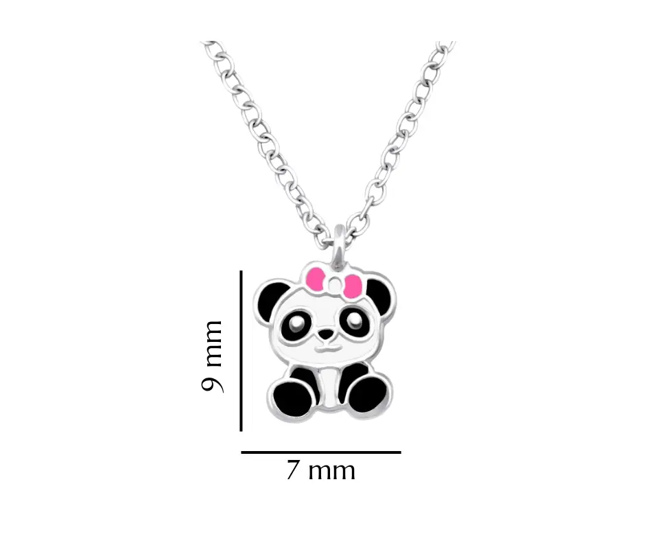 Srebrny naszyjnik Panda z kokardką dla dziewczynki 925