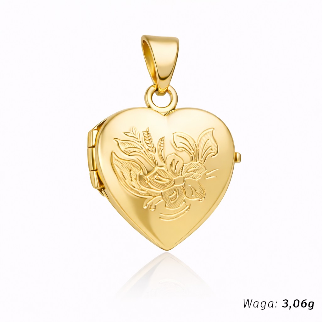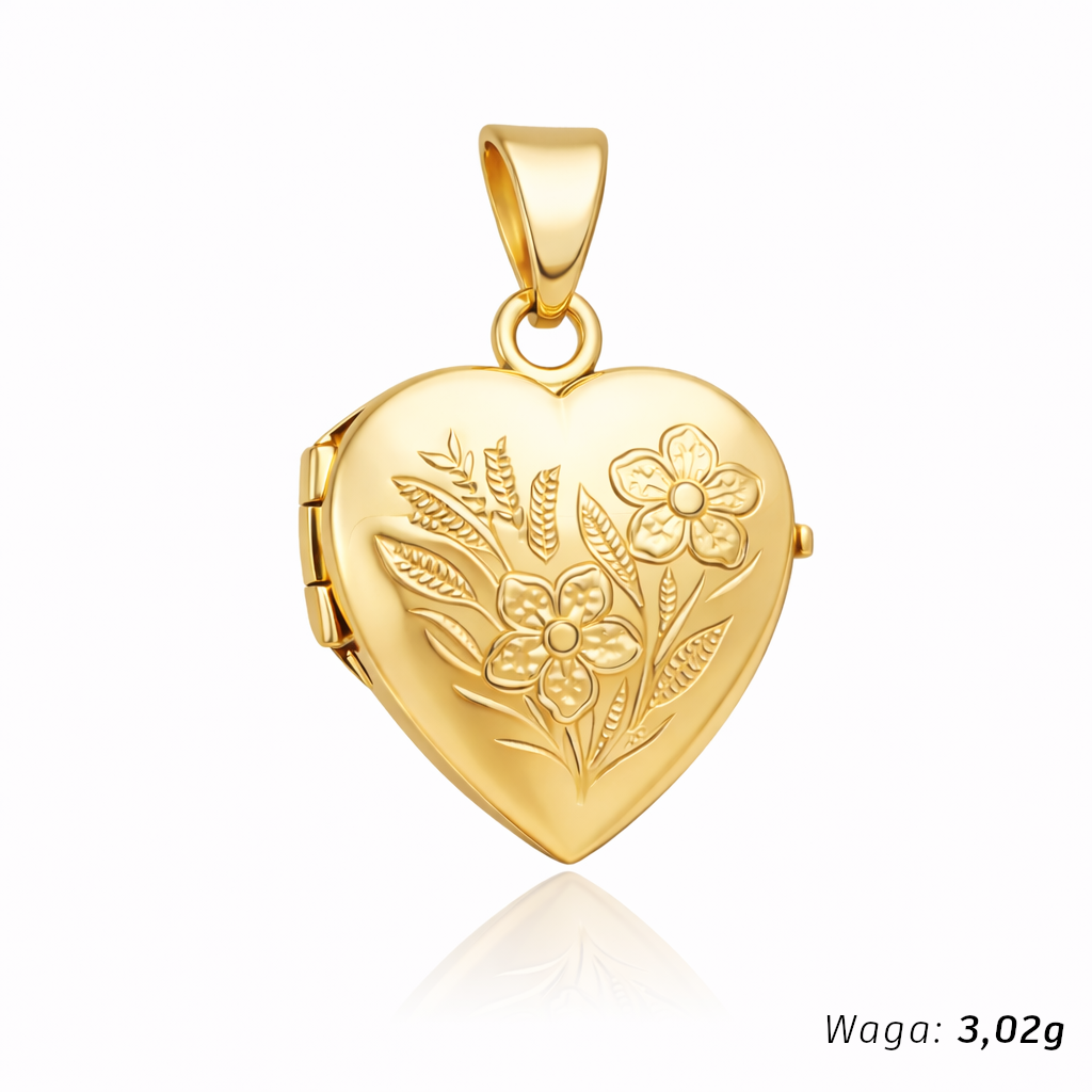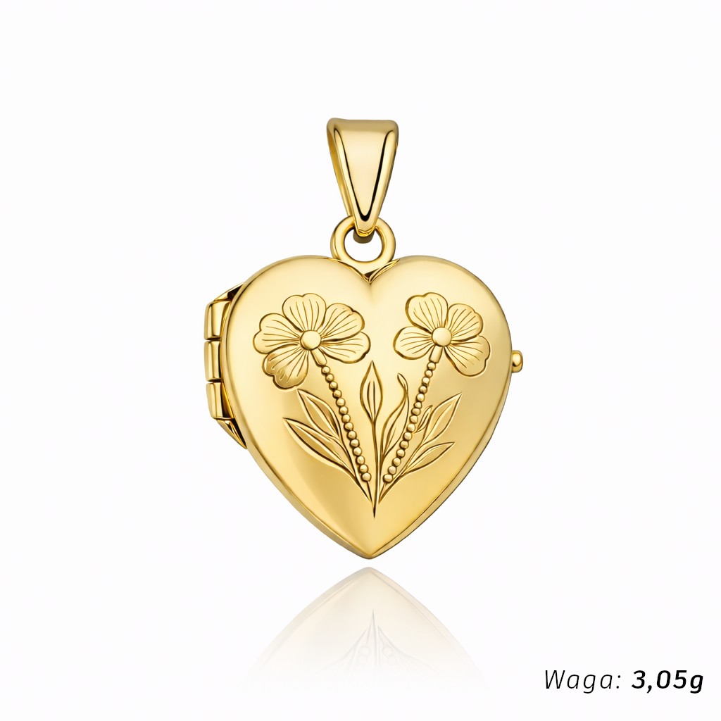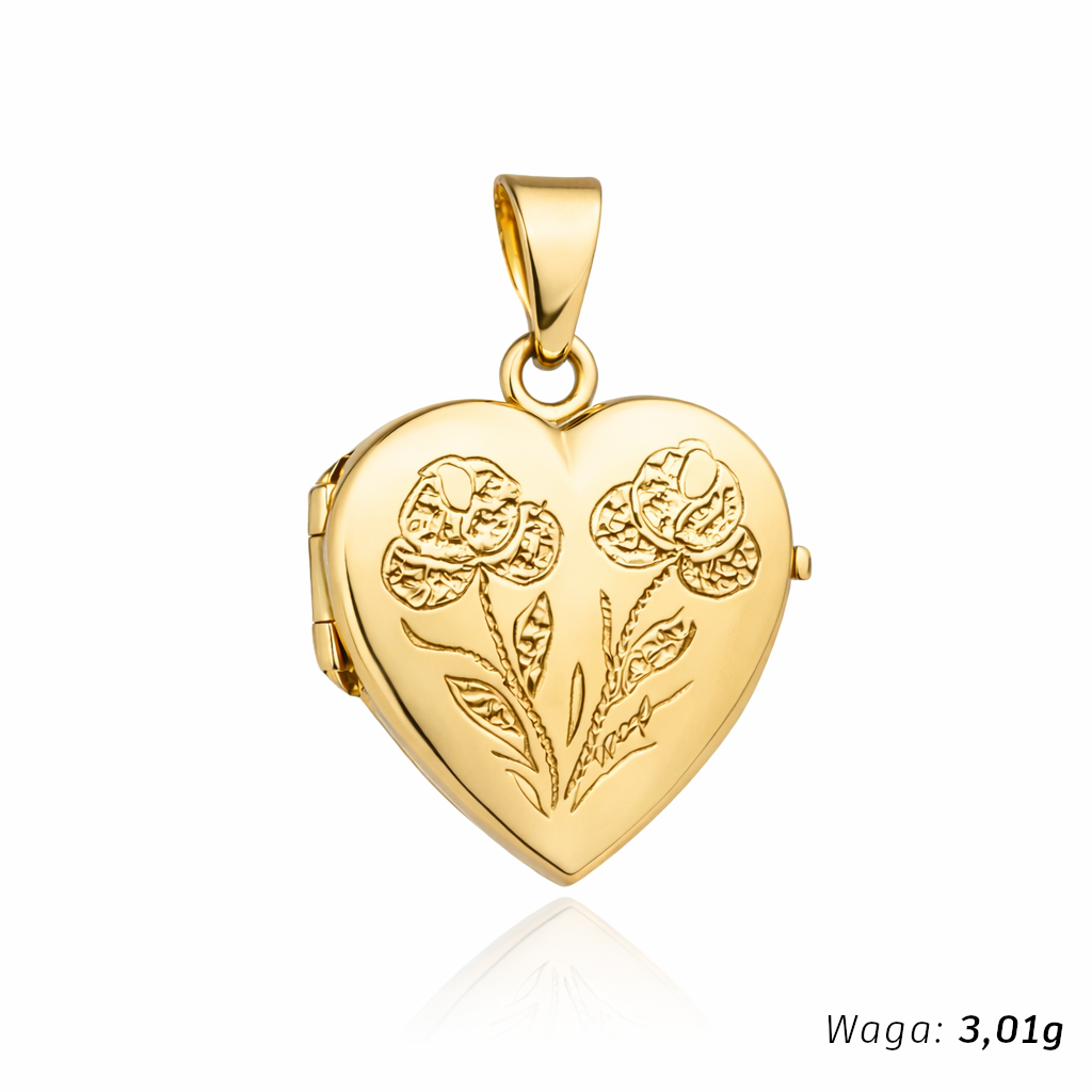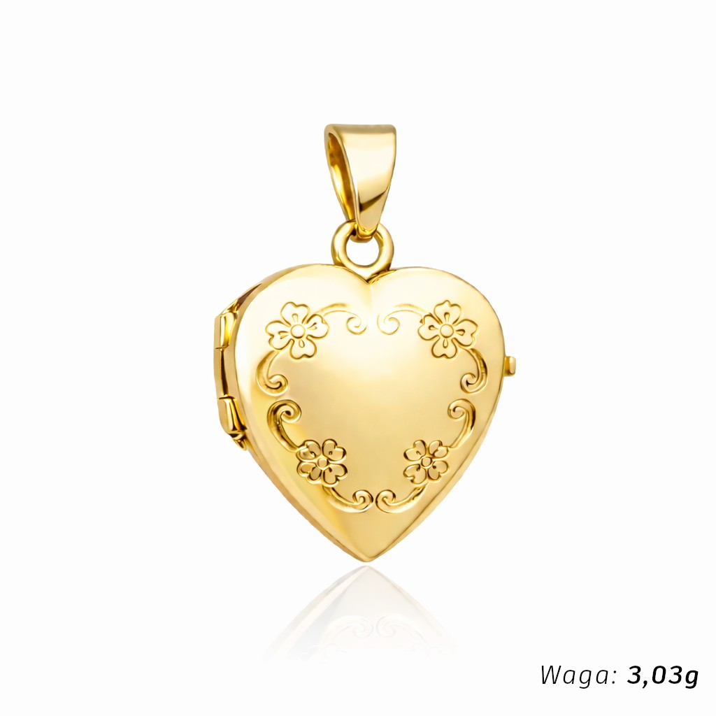 Kamień Bez kamienia Wzór Serce Materiał Złoto Kolor złota Żółte Próba 585 Szerokość serca [mm] 15 Długość serca [mm] 16 Długość serca z zawieszką [mm] 25 Szerokość całkowita po otwarciu [mm] 30 Zdjęcie produktu ma charakter poglądowy i może nieznacznie różnić się od rzeczywistego produktu w drobnych detalach.Wybór konkretnej gramatury oznacza zamówienie przypisanego do niej wzoru.Precyzyjnie wykonana zawieszka próby 585.Otwierane puzderko w kształcie serca daje możliwość włożenia do środka dwóch fotografii lub drobnej pamiątki.Idealnie sprawdzi się jako prezent dla bliskiej osoby, pamiątka chrztu, pierwszej komunii czy też bierzmowania. Zajmujemy się sprzedażą biżuterii ze złota. Sprzedajemy towary pochodzące od krajowych i zagranicznych producentów. Wszystkie produkty pochodzą z legalnego źródła.Wystawiamy faktury VAT.