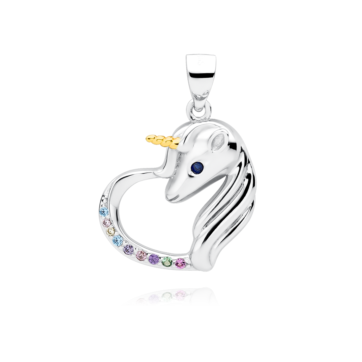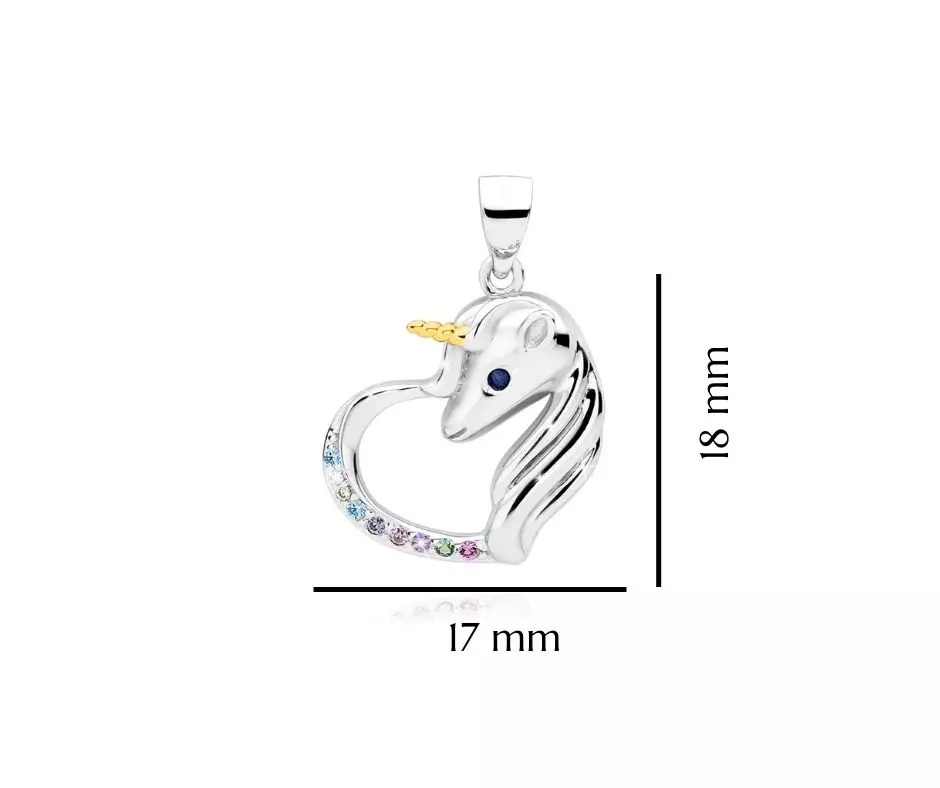 Zawieszka srebrna jednorożec w sercu dla dziewczynki z cyrkoniami próba 925