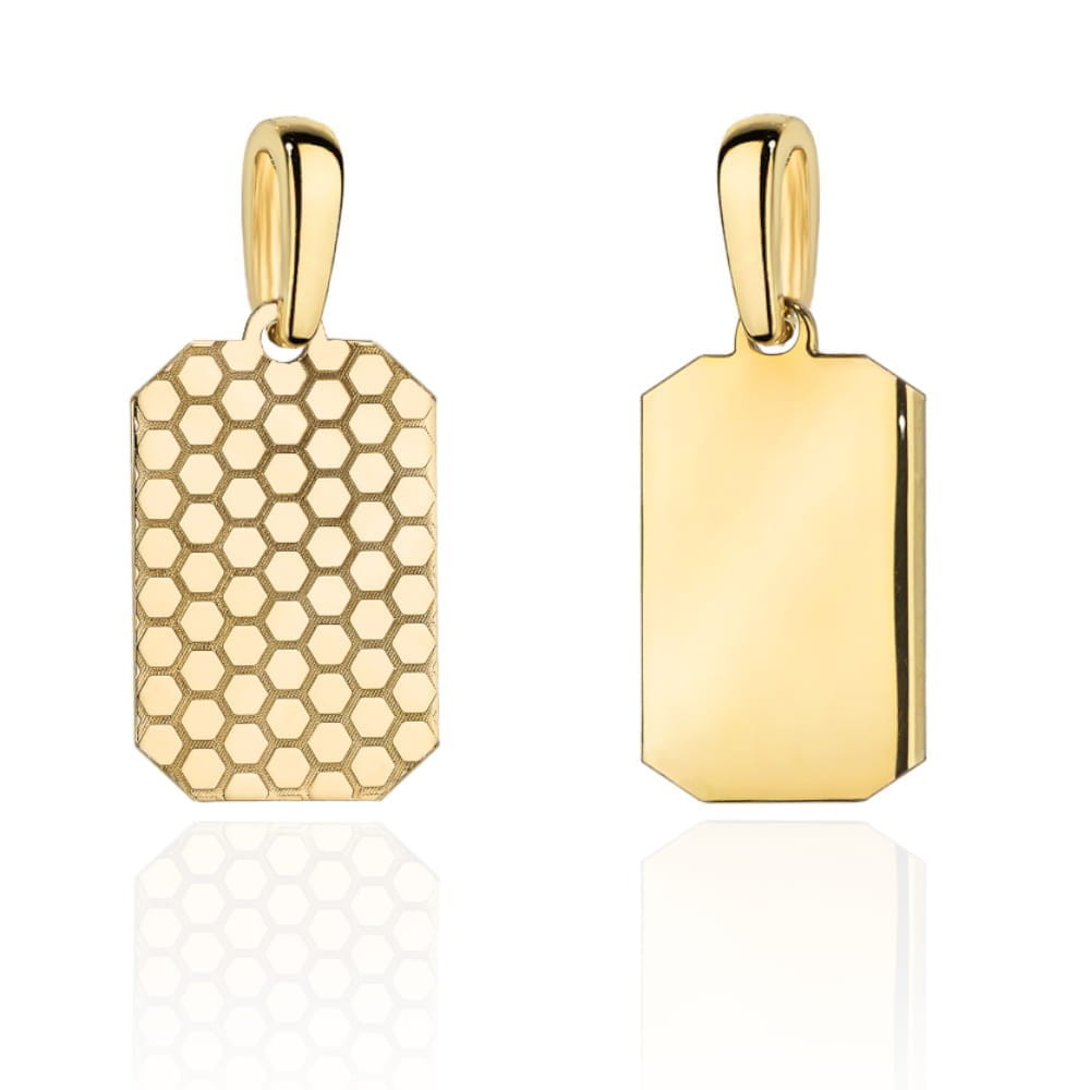 Zawieszka złota blaszka dwustronna zaokrąglona ze zdobieniem duża