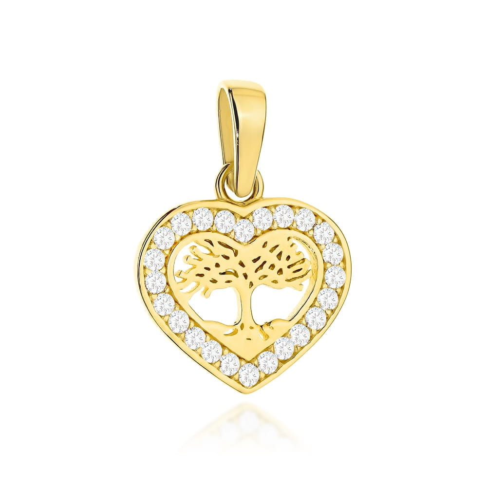 Zawieszka złota drzewko szczęścia w serduszku z cyrkoniami próba 585