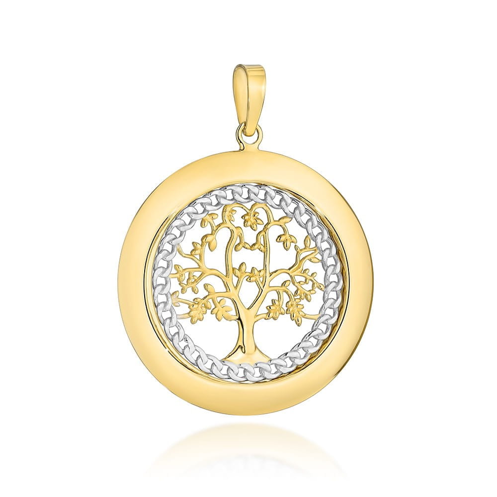 Zawieszka złota drzewko szczęścia zdobione w kole w dwóch kolorach złota
