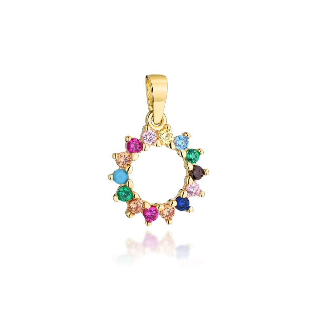 Zawieszka złota kółko z kolorowymi kamieniami