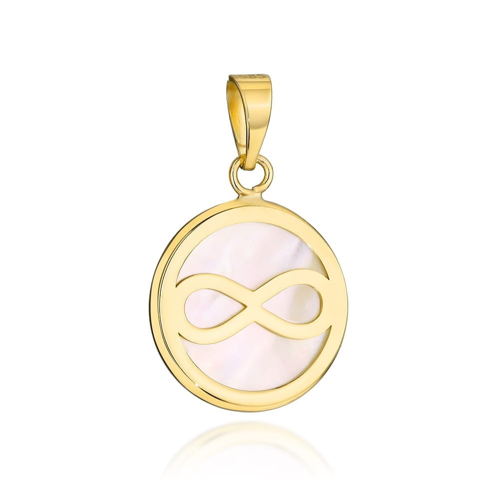 Zawieszka złota kółko z masą perłową i znakiem nieskończoności