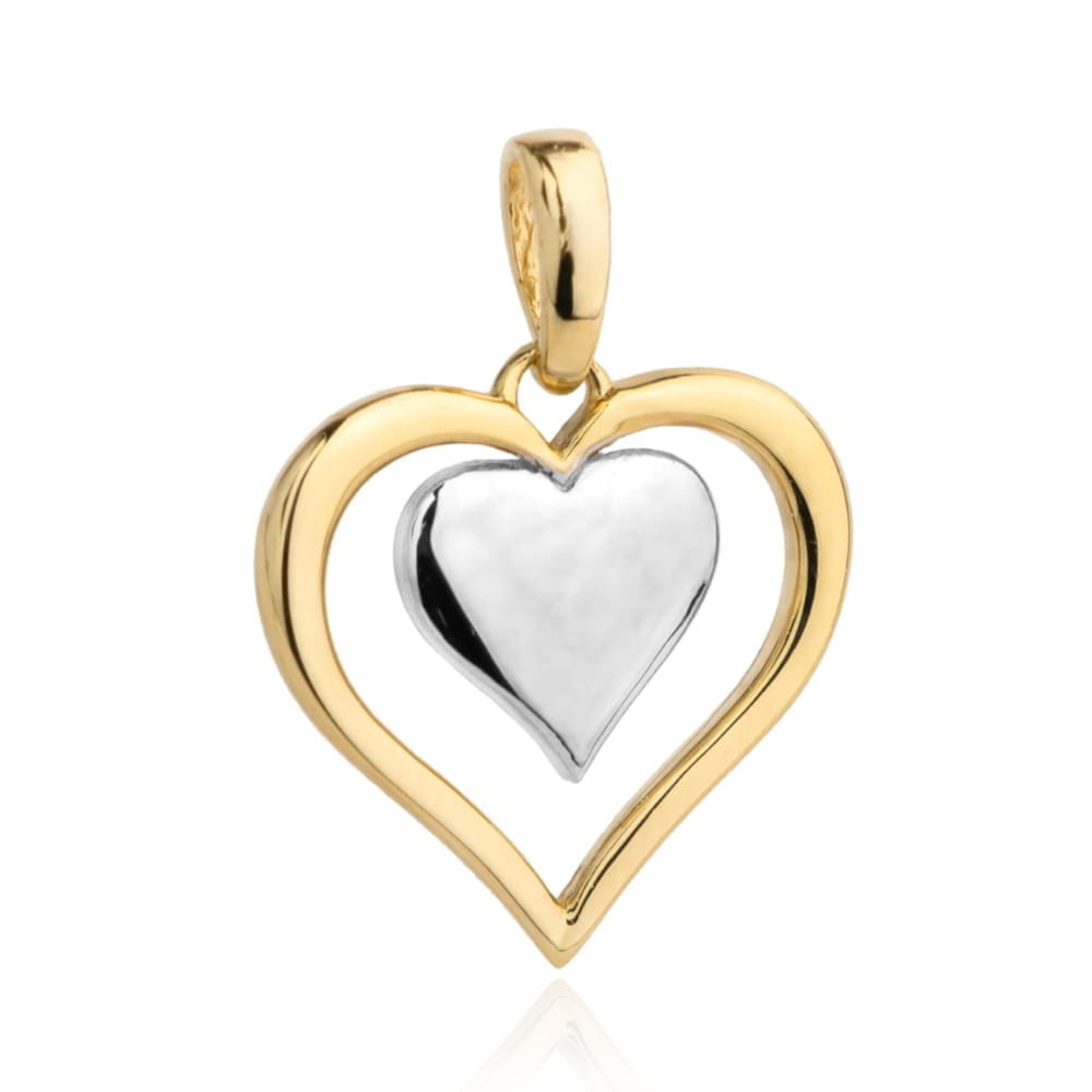 Zawieszka złota kontur serca z pełnym sercem w dwóch kolorach złota